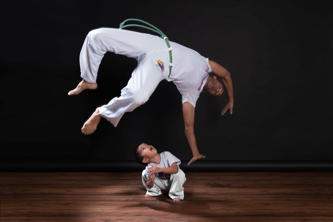 This class uses Capoeira as a tool to teach movement and rhythm to our youngest members. It involves lots of playing and learning through animal movements while slowly introducing other elements such as basic Portuguese, kicks , escapes and acrobatic sequences.